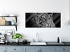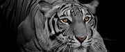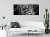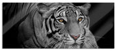 Mächtiger lauernder Tiger B&W Detail, Glasbild Panorama
