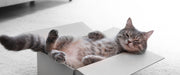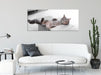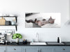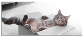 Müde Katze schläft im Karton B&W Detail, Glasbild Panorama