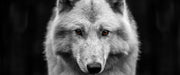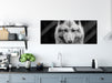Nahaufnahme junger Polarwolf B&W Detail, Glasbild Panorama