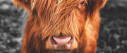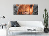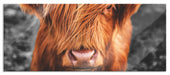 Nahaufnahme schottisches Highlandrind B&W Detail, Glasbild Panorama