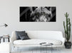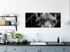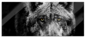 Nahaufnahme Wolf mit gelben Augen B&W Detail, Glasbild Panorama