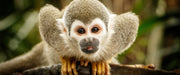 Neugieriges Totenkopfäffchen auf Ast, Glasbild Panorama