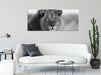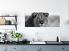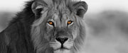 Poträt eines Löwen in der Savanne B&W Detail, Glasbild Panorama