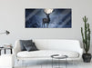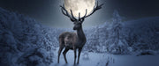 Rentier im Winterwald bei Mondschein, Glasbild Panorama