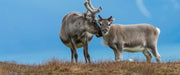 Rentiere die miteinander schmusen, Glasbild Panorama