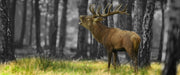 röhrender Hirsch im Wald, Glasbild Panorama