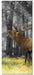 röhrender Hirsch im Wald schwarz/weiß, Glasbild Panorama