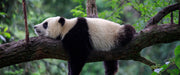 Schlafender Panda auf Baumstamm, Glasbild Panorama
