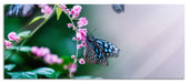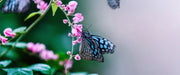 Schmetterlinge auf rosa Blumen, Glasbild Panorama