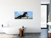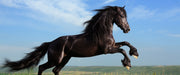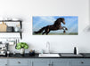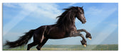 Schwarzer Hengst auf grünen Wiese, Glasbild Panorama