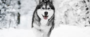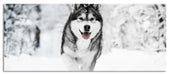 Sibirischer Husky im Winterwald B&W Detail, Glasbild Panorama