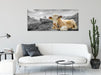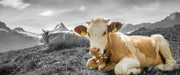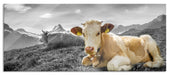 Simmentaler Kühe vor Schweizer Alpen B&W Detail, Glasbild Panorama