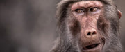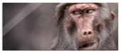 Skeptischer Affe schielt zur Seite, Glasbild Panorama
