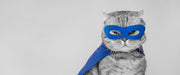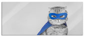 Süße Katze im Superheldenkostüm B&W Detail, Glasbild Panorama