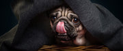 Süßer Mops unter der Decke, Glasbild Panorama