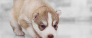 Süßer neugieriger Huskywelpe, Glasbild Panorama