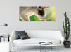 Süßes Kätzchen mit Blüte, Glasbild Panorama