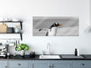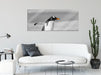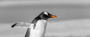 watschelnder Pinguin am Strand, Glasbild Panorama