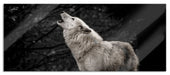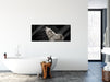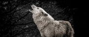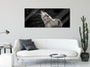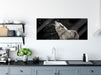 Weißer heulender Wolf im Wald B&W Detail, Glasbild Panorama