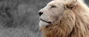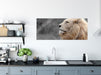 Weißer Löwe in der Savanne, Glasbild Panorama