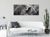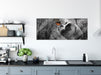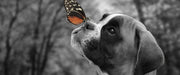 Welpe mit Schmetterling auf der Nase B&W Detail, Glasbild Panorama