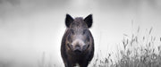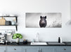 Wildschweinauf einer Wiese im Nebel B&W Detail, Glasbild Panorama