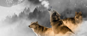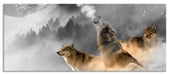 Wölfe in der Wüste heulen Vollmond an B&W Detail, Glasbild Panorama