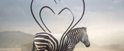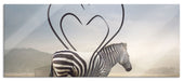 Zebra mit Herzbotschaft in der Savanne, Glasbild Panorama