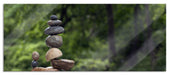 Balanciertes Steinkunstwerk am Fluss, Glasbild Panorama