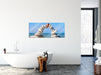 Brücke aus Zen Steinen am Meer, Glasbild Panorama