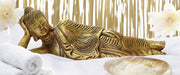 goldener Buddha auf Handtuch, Glasbild Panorama