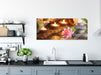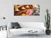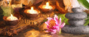 Kerzen mit Zen Steinen und Seerose, Glasbild Panorama