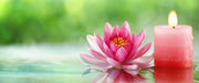 Kleine Seerose neben Kerze, Glasbild Panorama
