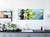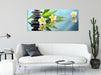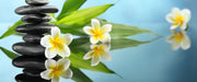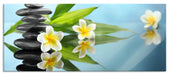 Zen Steinturm Monoi Blüten, Glasbild Panorama