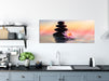 Zensteine mit Seerose im Sonnenuntergang, Glasbild Panorama