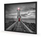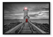 Leuchtturm bei Sonnenuntergang, Poster mit Bilderrahmen