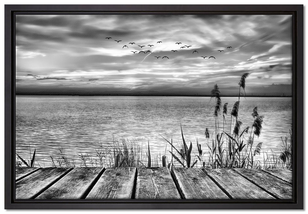 Steg mit Ausblick aufs Meer, Leinwandbild mit Bilderrahmen