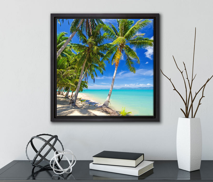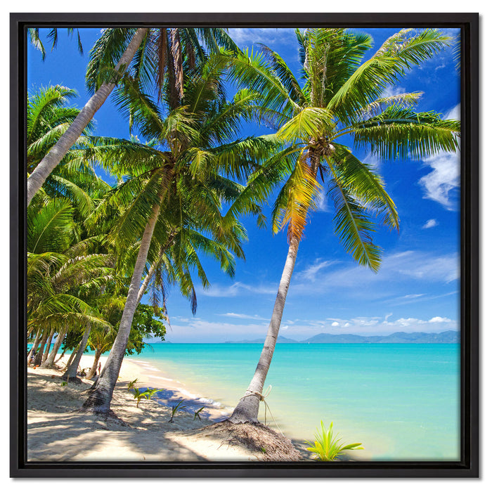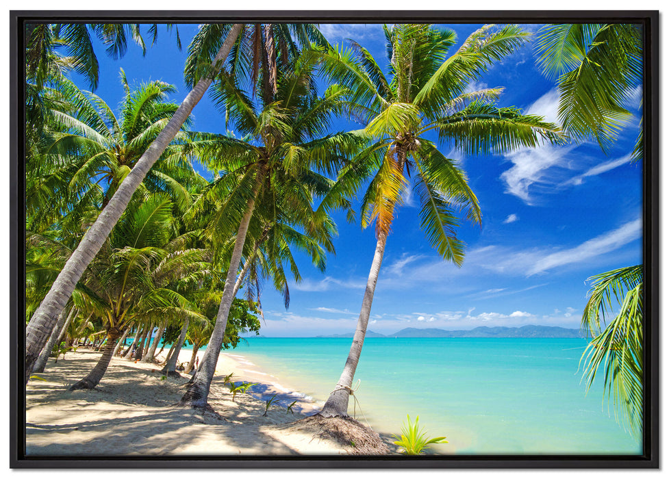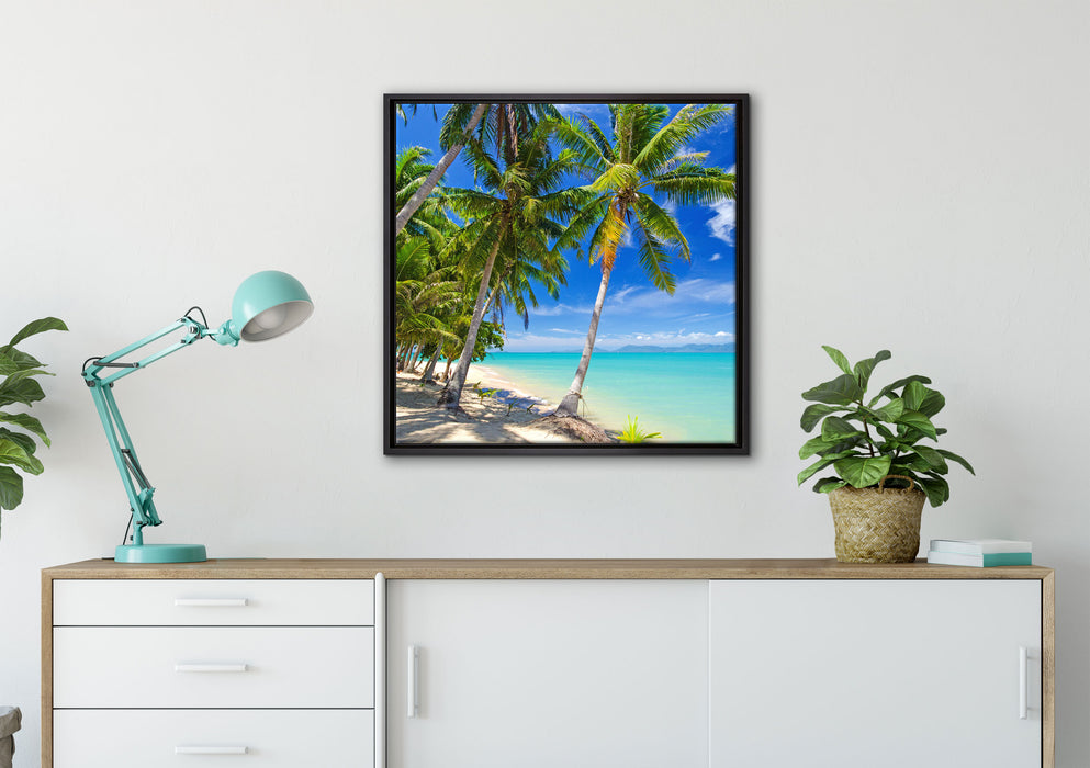 Palmen Traumstrand, Leinwandbild mit Bilderrahmen