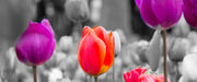 Bunte holländische Tulpen Nahaufnahme B&W Detail, Glasbild Panorama