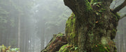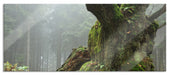 Dicker Baum im Wald im Moos, Glasbild Panorama