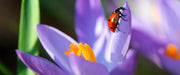 Krokussblüte mit Marienkäfer, Glasbild Panorama