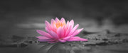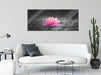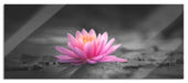 Leuchtende Lotusblüte auf grauer Pfütze B&W Detail, Glasbild Panorama
