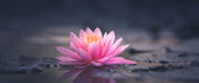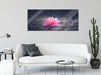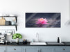 Leuchtende Lotusblüte auf grauer Pfütze, Glasbild Panorama