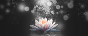 Magische Lotusblüte mit Glitzerstaub B&W Detail, Glasbild Panorama