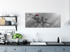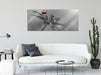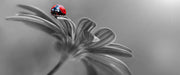 Merienkäfer auf roter Blüte Nahaufnahme B&W Detail, Glasbild Panorama