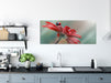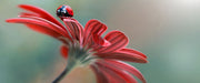 Merienkäfer auf roter Blüte Nahaufnahme, Glasbild Panorama
