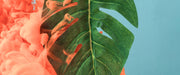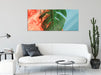 Monstera Blatt mit Pastelwolke, Glasbild Panorama