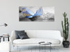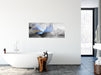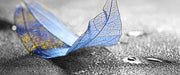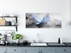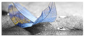 Nahaufnahme blaues Blattgerüst im Regen B&W Detail, Glasbild Panorama