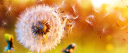 Nahaufnahme Pusteblume Sonnenuntergang, Glasbild Panorama