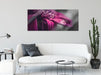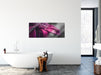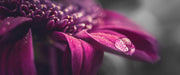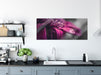 Nahaufnahme Tropfen auf lila Blume B&W Detail, Glasbild Panorama